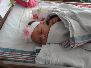 Ha Just kidding. It was more like with a snap of a finger, 22 hours of labor, an epidural that wore off, 10 more seconds and I would of had an emergency C-section, episiotomy, throwing up, passing out, starving, water breaking that ran down Brody's legs, IV that went straight through my vein.. SHE WAS HERE!! No biggie. Piece of Cake really. That pretty much sums it up.